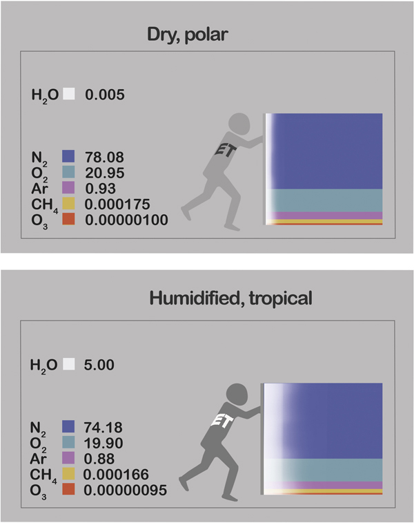 Humidification of air reduces the abundances of dry-air gas components such as oxygen, explaining why tropical humidity can be "stifling". This is overlooked due to the common expression of gas concentrations as fractions of dry air. Such neglect of water vapour also masks the key role of its sources and sinks in activating transport mechanisms of other gases. Humidity should be quantified whenever reporting gas concentrations.